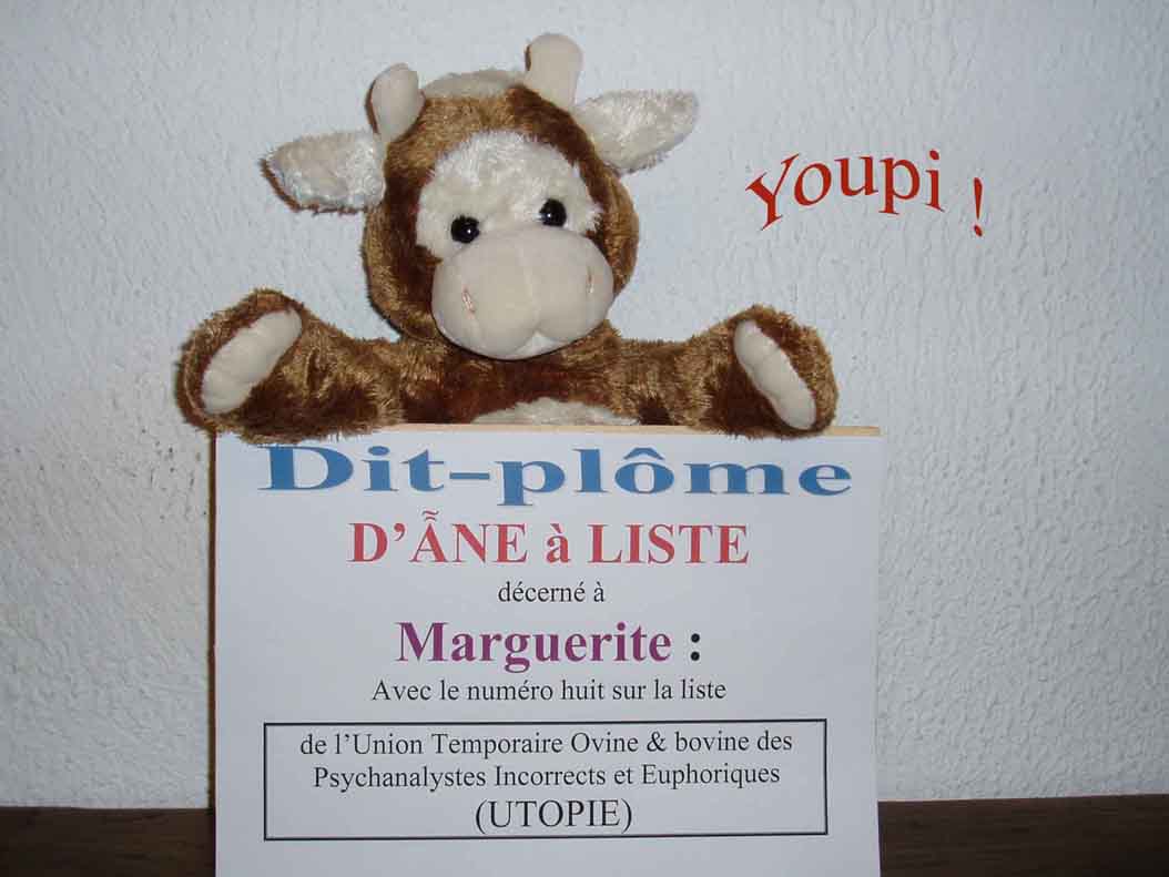 Les tout débuts de Marguerite -III- Marguerite en séance -IV- Les vacances de Marguerite -V- Marguerite en montagne -VI- Le zen de Marguerite -VII- Marguerite à l'opéra -VIII- Le lourd secret de Marguerite -IX- Déclaration -X- Le programme de Marguerite XI - La compétence de Marguerite -XII- Les voeux de Marguerite Retour page d'accueil Retour à la page humour |